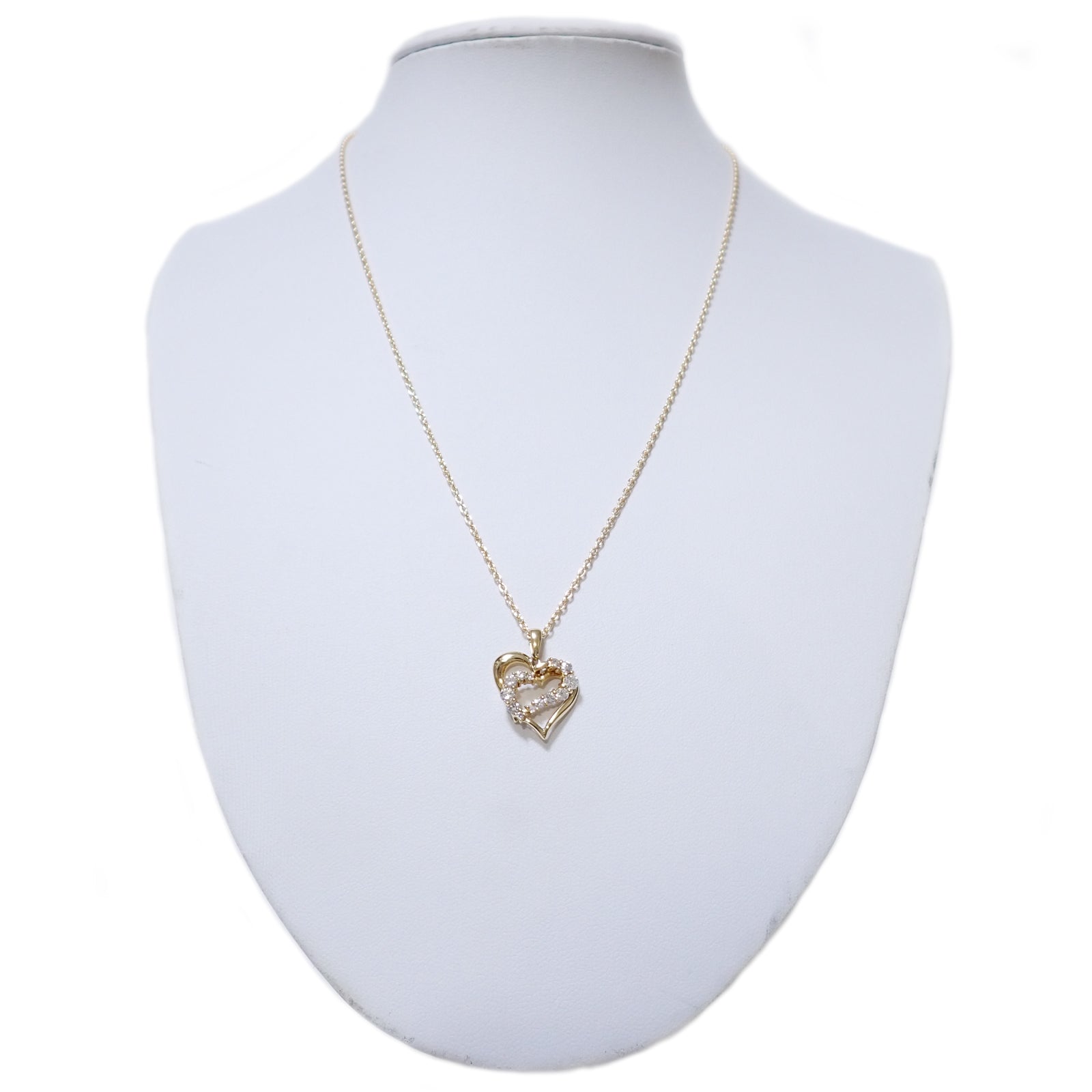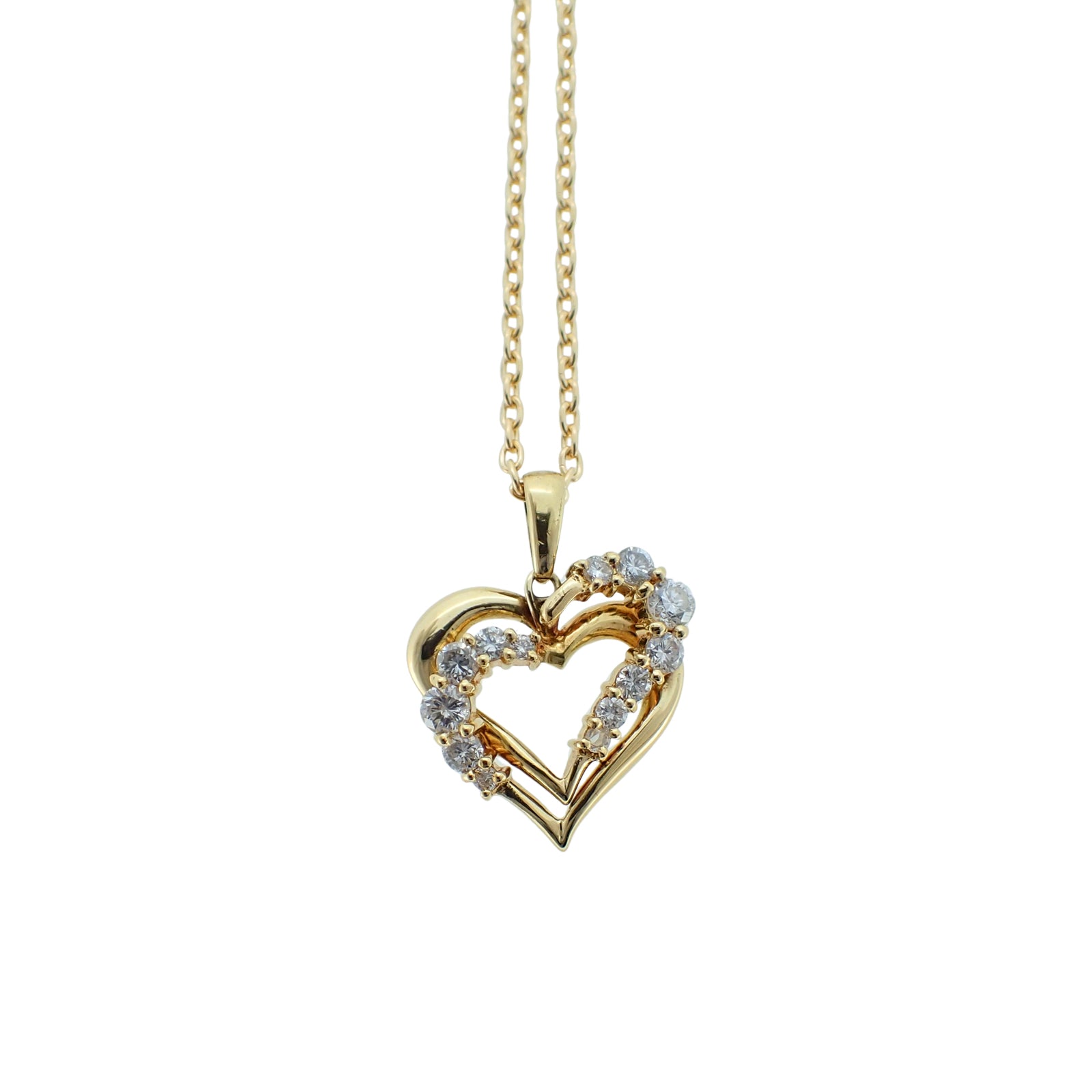 K18YG ダブル ハートモチーフ ダイヤ 0.51ct 6.5g ゴールド レディース ネックレス
