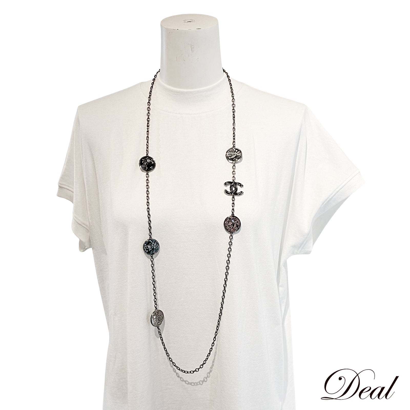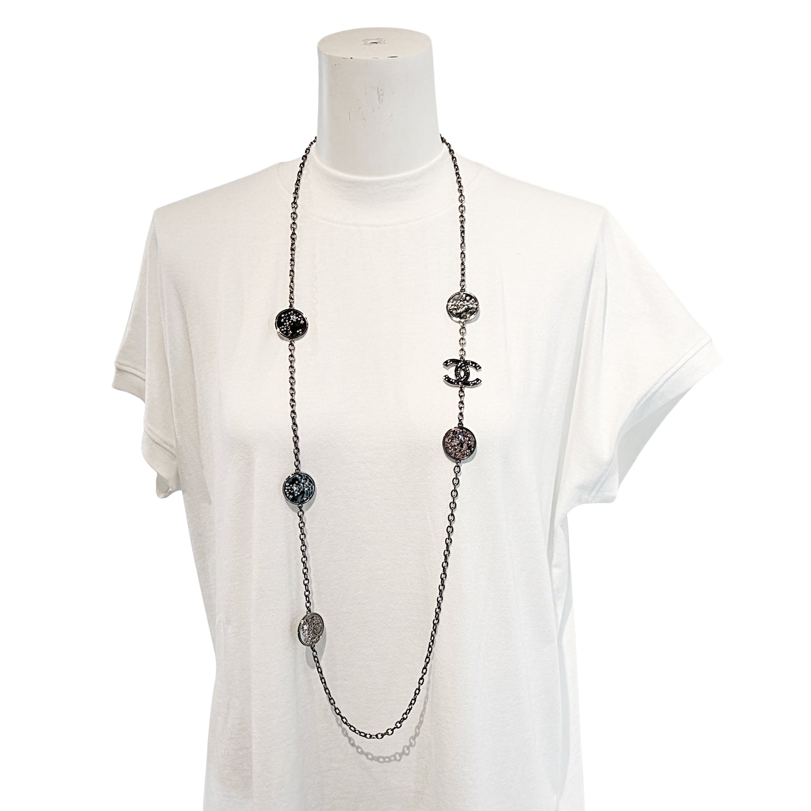 CHANEL シャネル ココマーク スター メダル ストラス B24 K ロング グレー レディース ネックレス