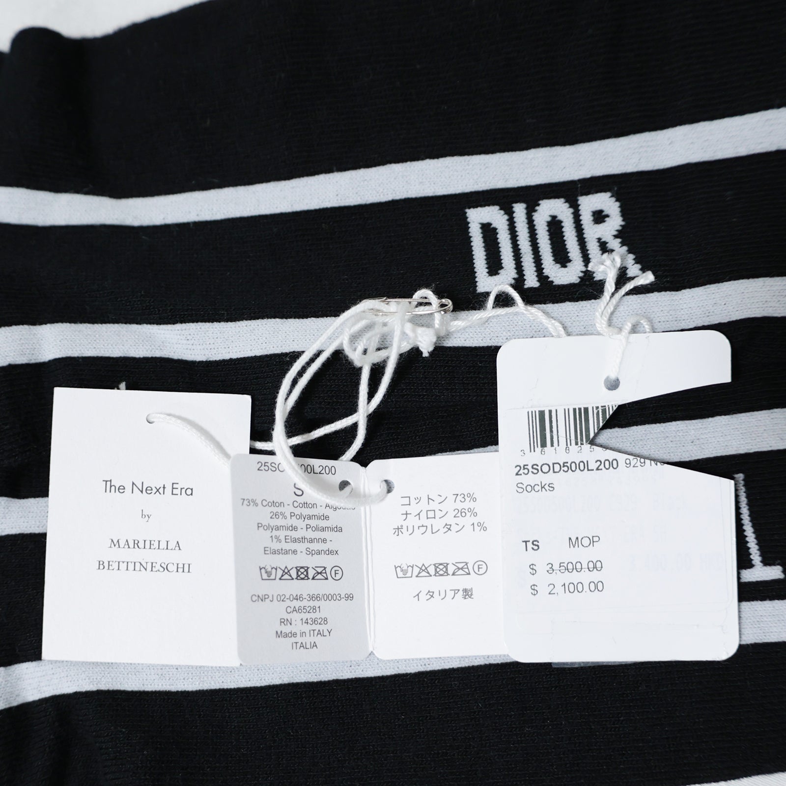 未使用、存储的 Dior 袜子,尺码 S,25SOD500L200,The Next Era,黑色,女款。