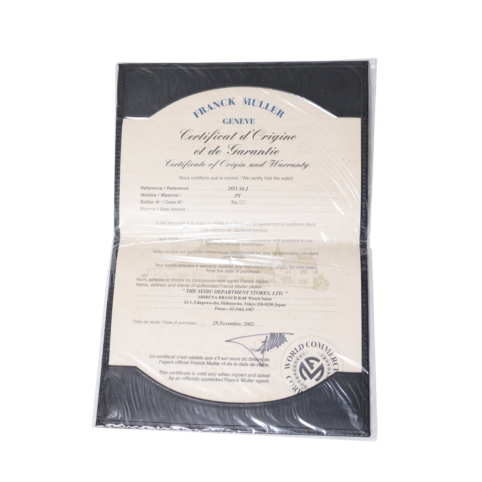 铂金950日本限定款Franck Muller Tonneau Curvex 2851S6J男表