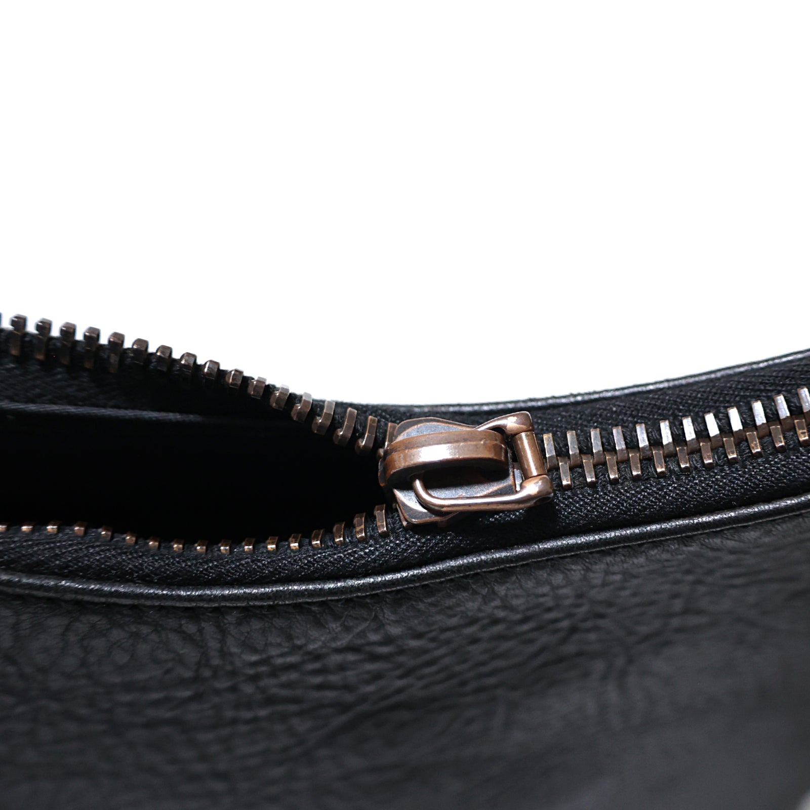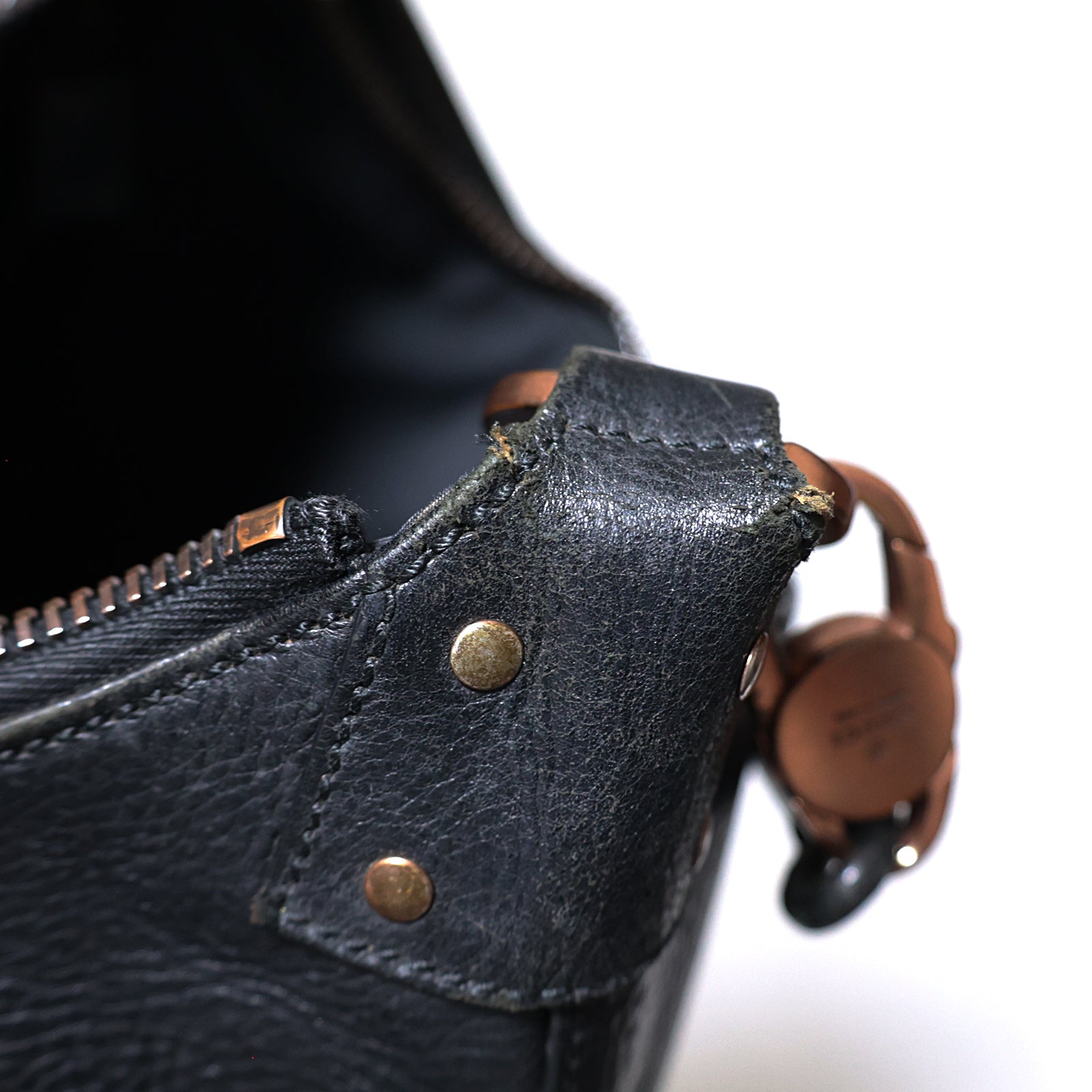 金具にスレやメッキ剥がれがあり、ファスナー部分のプル欠品でございます。開閉可能です。