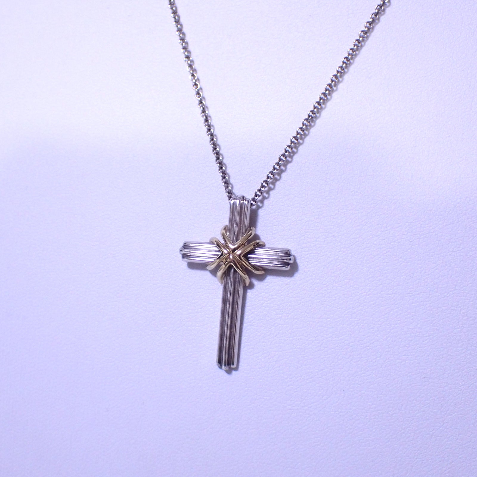 TIFFANY&Co. ティファニー シグネチャー クロス Sv925 K18YG ヴィンテージ シルバー レディース ネックレス