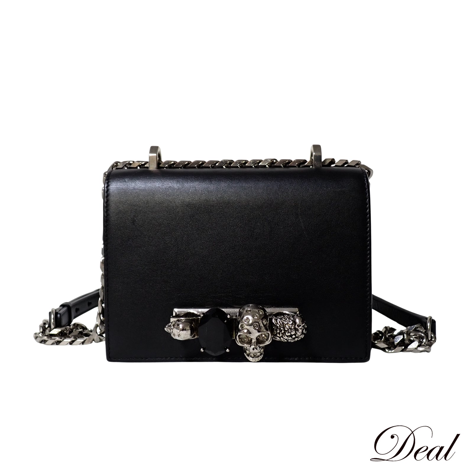 Alexander McQueen アレキサンダーマックイーン ジュエルド サッチェル スカル メリケンサック ブラック レディース ショルダーバッグ